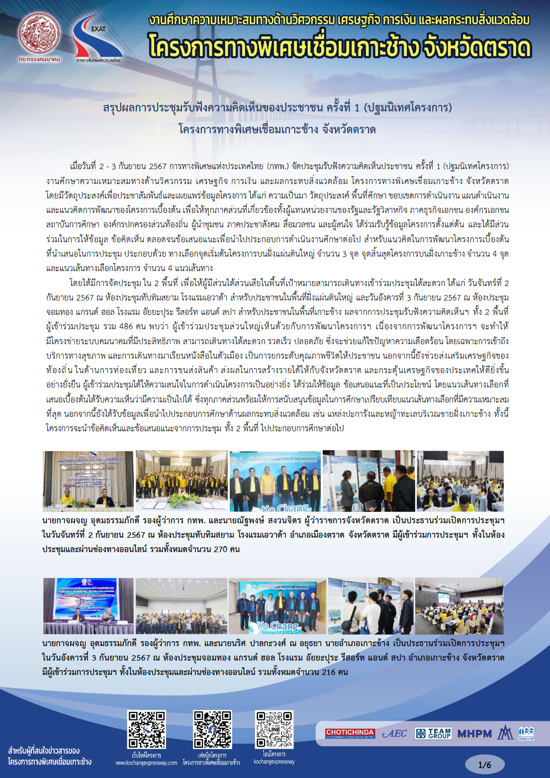>> สรุปผลการรับฟังความคิดเห็นของประชาชนครั้งที่ 1 (ปฐมนิเทศโครงการ)